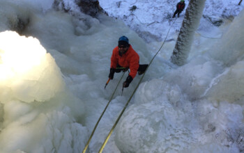 When winter takes place and all the waterfall becomes ice, a feverishness takes place. Climbing these massive ice sculptures require a control over our aptitude and our knowledge because ice is moving, living and evolving trough the cold season. The comprehension of this element is much more than just hitting the ice with an axe and crampons!