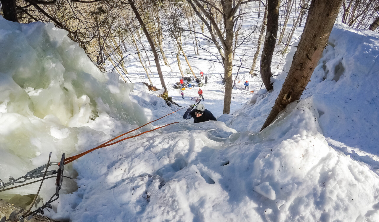 topYou did an introduction to ice climbing and you want to keep going, but you don’t rock climb? With this course you will learn how to install a top-rope, belay and enjoy ice climbing for all winter long!
